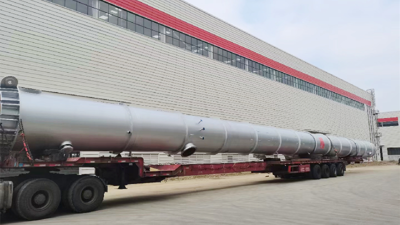 由中一環(huán)保生產的一批塔器設備完成發(fā)貨,該批塔器最長達40余米,在車間完成整體安裝并運輸交付給客戶。