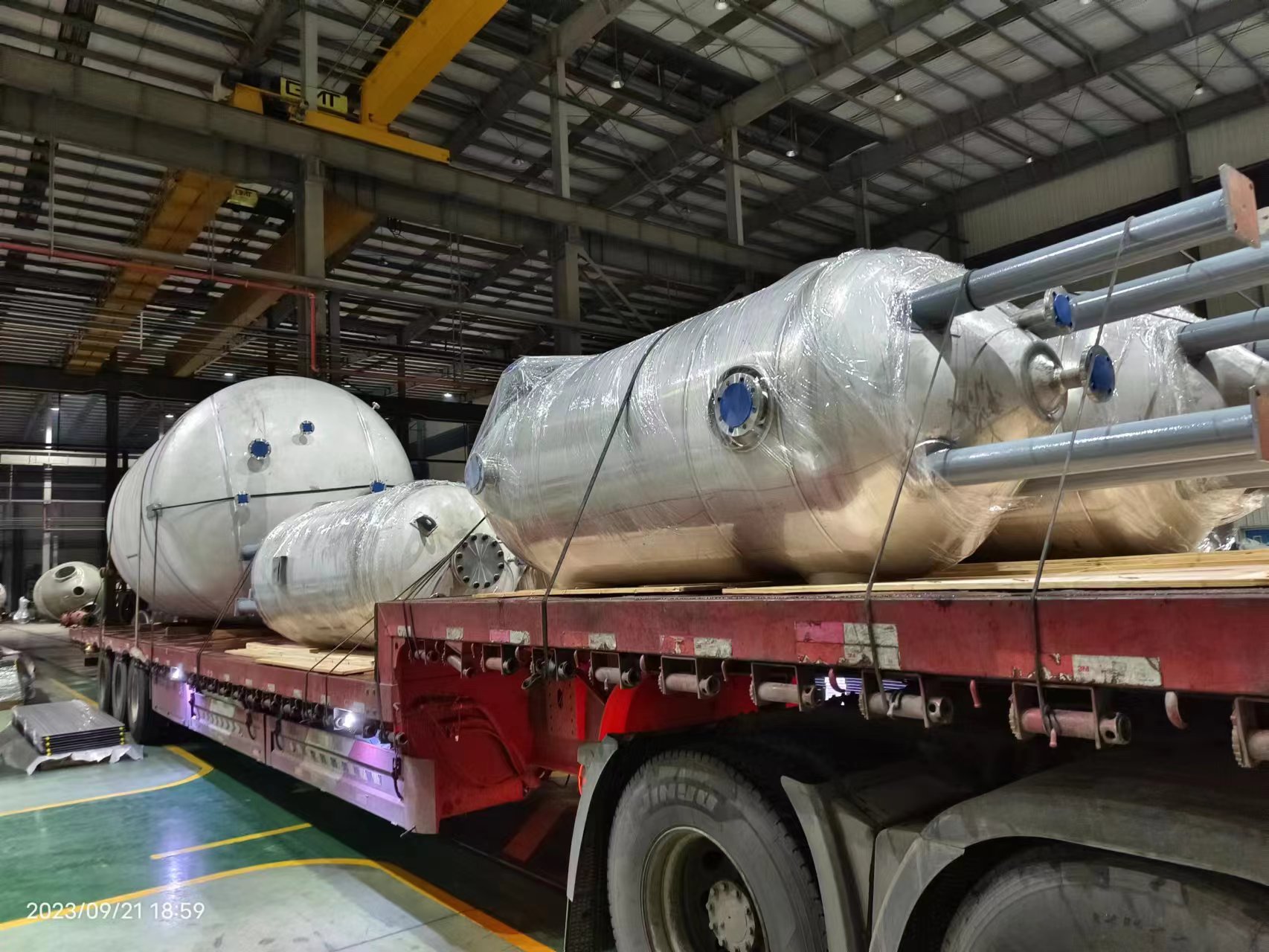 近日,一批不銹鋼非標(biāo)儲罐設(shè)備分若干車成功發(fā)往山西客戶現(xiàn)場。